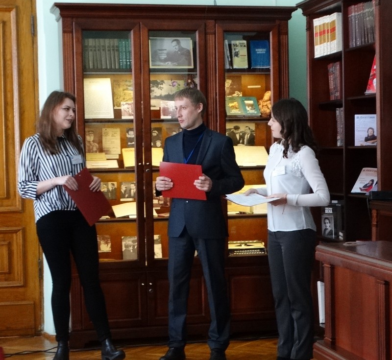 17 красавіка ў творчай лабараторыі, што працуе ў Літаратурным музеі аддзела краязнаўства, адбылося чарговае пасяджэнне “Творцы застаюцца паміж нас”. На гэты раз яго ўдзельнікамі сталі вучні СШ № 56. У гульнёвай форме яны пазнаёміліся з жыццёвымі і творчымі стасункамі народных пісьменнікаў Беларусі – ураджэнцаў Гомельшчыны Івана Мележа, Івана Навуменкі, Івана Шамякіна і Андрэя Макаёнка. Да іх увагі былі прапанаваны віктарыны, конкурсы: “Слоўны футбол”, “Гісторыя пахаў”; віртуальнае падарожжа па родных мясцінах пісьменнікаў. Напрыканцы вучні прачыталі ўрыўкі з вядомых твораў знакамітых пісьменнікаў. Мерапрыемства суправаджалася прэзентацыяй “Чытаем разам”.
