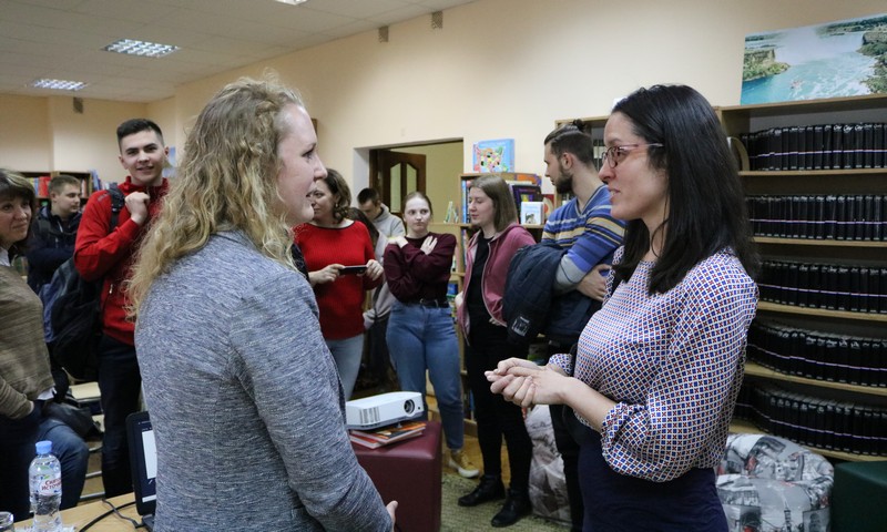 10 мая в отделе литературы на иностранных языках прошла встреча с Аланой Фелтон, преподавателем Витебского государственного университета им. П.М. Машерова, работавшей в Беларуси в рамках программы профессиональных обменов им. сенатора Джеймса Фулбрайта Госдепартамента США.