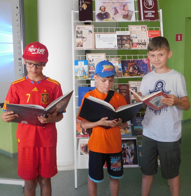 В читальном зале работала книжно-иллюстративная выставка, рассказывающая о жизни и творчестве Александра Сергеевича. Около неё в течение дня проходили викторина, беседа и обзор представленной литературы, звучали стихотворные произведения поэта – их читали наизусть и со страниц книг юные посетители библиотеки.