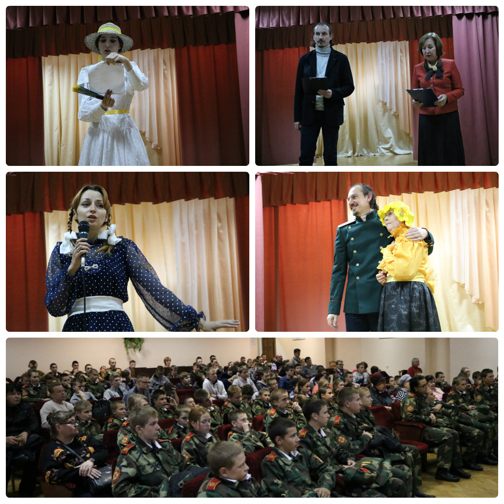 Сильное эмоциональное впечатление произвели на аудиторию – учащихся городского кадетского училища и профессионального лицея речного флота – сценические миниатюры в исполнении артистов народного любительского театра «Грачи». Ярко и образно они представили многогранную жизнь поэта, короткую как вспышка, богатое творческое наследие М. Лермонтова.