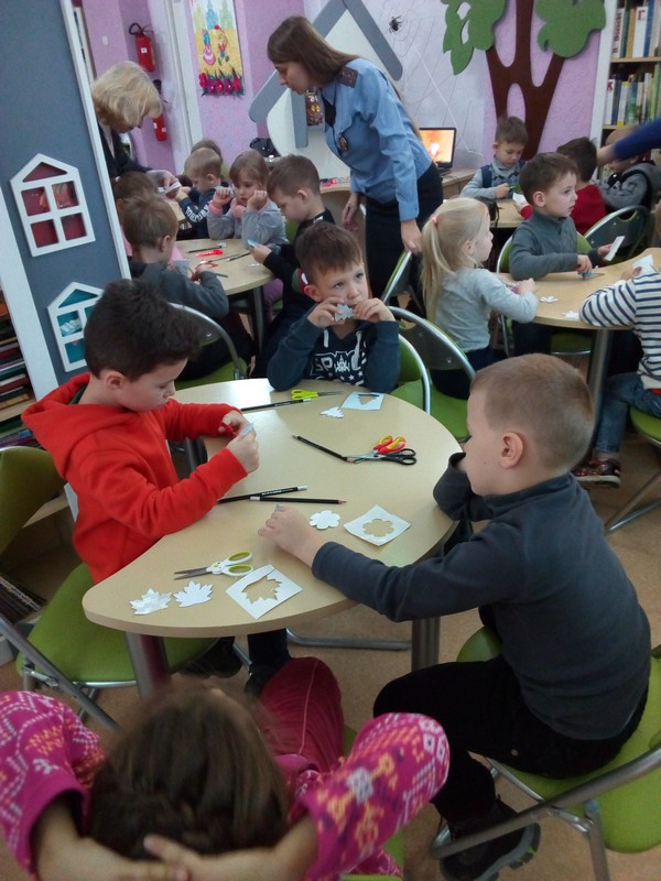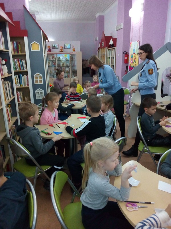 Профилактическую беседу провели вриод начальника отделения по агитации и пропаганде УГАИ УВД Гомельского облисполкома Анна Константиновна Ковалёва и инспектор отделения Дарья Андреевна Ткачёва. Анна Константиновна рассказала ребятам из ГУО «Ясли-сад № 7» о необходимости соблюдения требований Правил дорожного движения и о важности использования световозвращающих элементов в вечернее время суток. После профилактической беседы Дарья Андреевна и Анна Константиновна провели мастер-класс по изготовлению фликеров и поиграли с ребятами в игру «Испорченный светофор». В конце мероприятия каждый ребёнок имел свой, изготовленный собственными руками, фликер. Для юных читателей была подготовлена книжная выставка «Дорожная азбука», на которой библиотекари собрали литературу о Правилах дорожного движения, и показан мультфильм о важности использования фликеров в жизни человека.