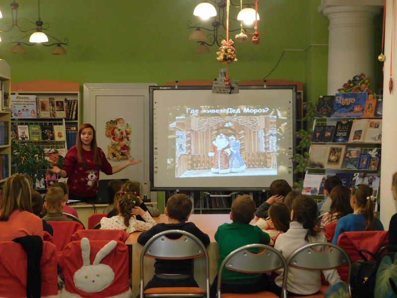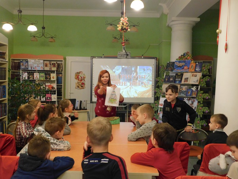 Юные гости пришли в отдел обслуживания учащихся 6-9 классов на новогоднюю познавательную игровую программу «Мы встречаем Новый год!». Ребята познакомились с традициями встречи Нового года на Руси, с историей новогодней ели, которой в этом году исполнилось 320 лет, больше узнали о добром дарителе ёлок и подарков – Дедушке Морозе. Во время игры-викторины «Зимы прекрасные мотивы» детвора с восторгом перечисляла приметы и особенности этого, пожалуй, самого яркого времени года из-за весёлой череды праздников, которые любят все! Ребята признались библиотекарю, что практически все написали письмо Деду Морозу и с интересом ждут подарков!