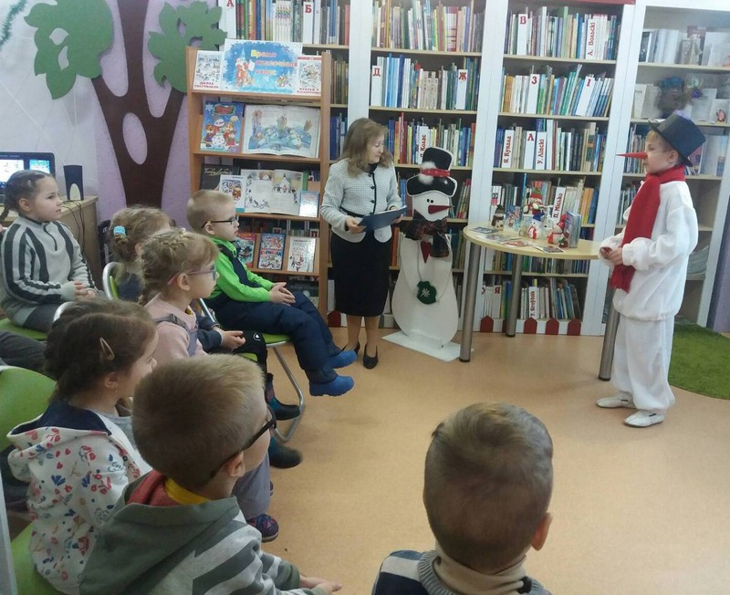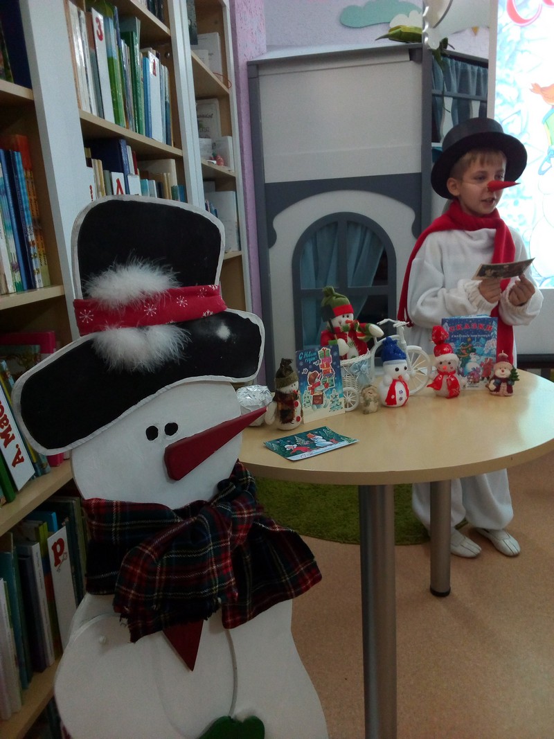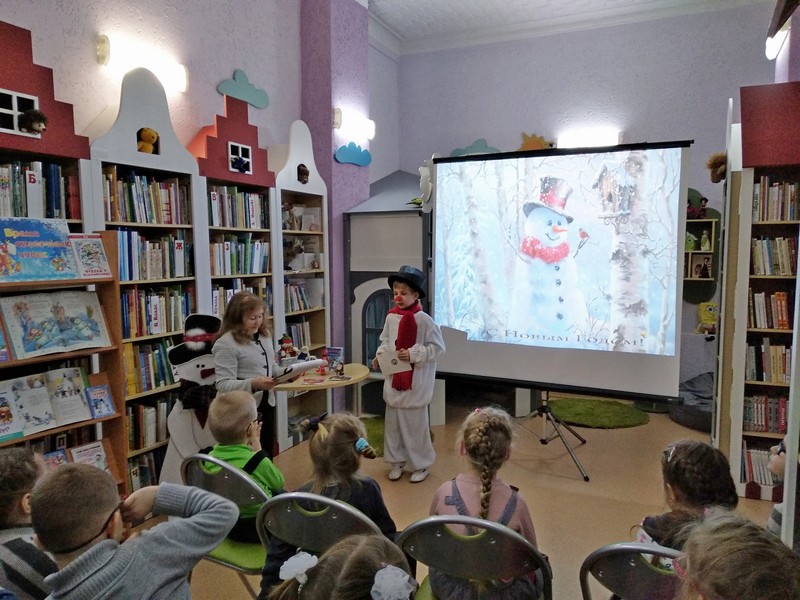 Ребята узнали, где впервые появились снеговики, какой смысл вкладывали славяне в изготовление снежных фигур, на страницах каких сказочных историй можно встретиться со снеговиками. Юным читателям посмотрели красочную презентацию «Снежный хоровод снеговиков» с фрагментами новогодних мультфильмов.