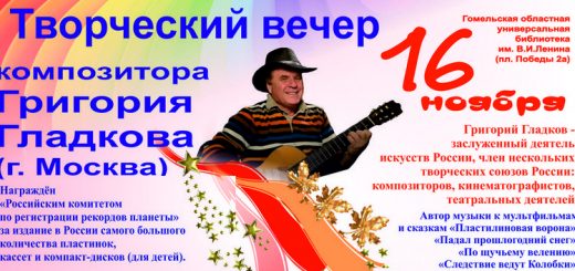 Творческий вечер Григория Гладкова 20.01.2017 Автор: admin · Published 20.01.2017 · Last modified 09.03.2017
