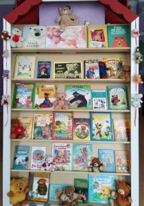 Вниманию юных читателей была представлена выставка-инсталляция «Мишка, мишка, медвежонок», где на полочках в тесном соседстве нашли своё место популярные книги о медвежатах и мохнатые друзья детства – игрушечные медведи, живущие не только в библиотеке, но и дома у сотрудников отдела.