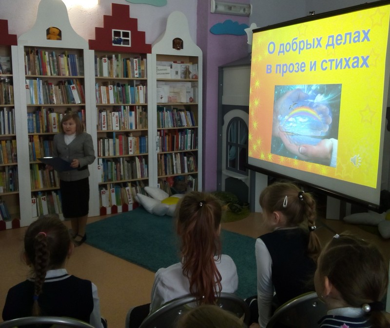 24 марта библиотеку посетили юные читатели СШ №24. Для них состоялся час библиотерапии по страницам книг В. Осеевой, В. Железникова, Е. Пермяка, А. Гайдара, Ю. Яковлева, в которых раскрывается тема милосердия, взаимовыручки, уважения, доброжелательности людей по отношению друг