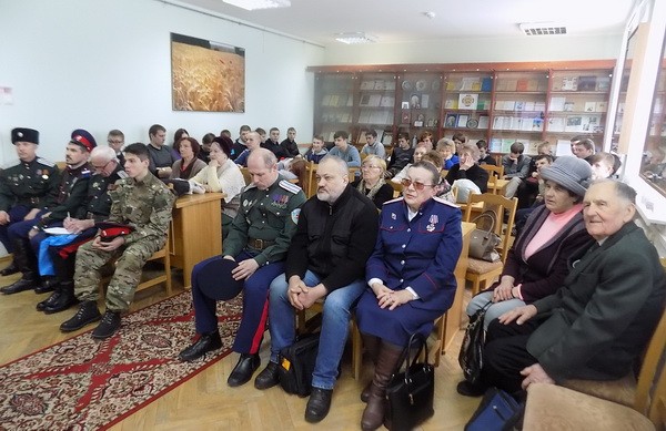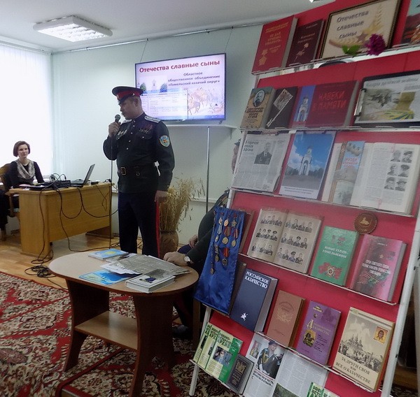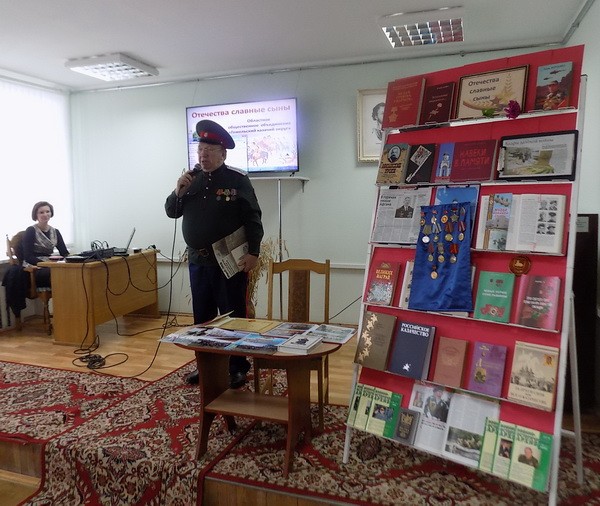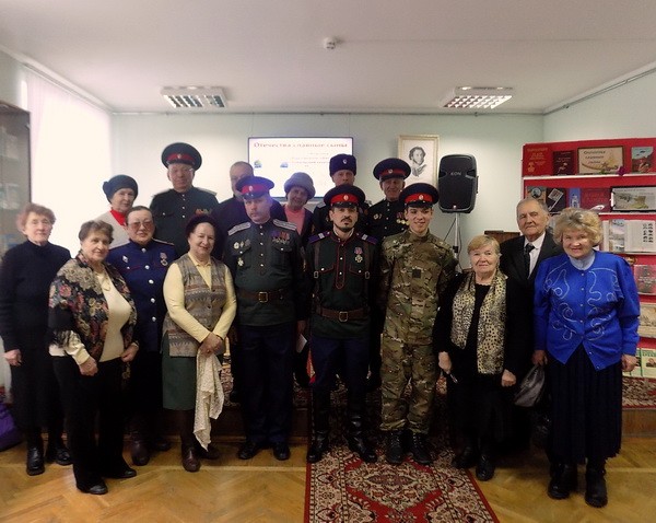 17 февраля в читальном зале Славянской библиотеки-филиала состоялась праздничная программа «Отечества славные сыны», посвященная Дню защитника Отечества. Представители областного общественного объединения «Гомельский казачий округ» рассказали зрителям о бойцах, прославивших свои имена на Гомельской земле в годы Великой Отечественной войны. Учащиеся I курса учреждения образования «Гомельский государственный профессиональный лицей речного флота» и активные читатели библиотеки познакомились с гомельчанами, выполнявшими интернациональный долг – Валерием Петровичем Бодашко, Владимиром Васильевичем Никитенко и Николаем Петровичем Бракоренко. В программе прозвучали песни военных лет в исполнении сотника Валерия Петровича Бодашко «Лизавета», «Журавли», «Последний бой», «Казаки в Берлине» и др. Сотрудники библиотеки оформили тематическую выставку, на которой были представлены материалы, призванные воскресить память о героях военных лет.