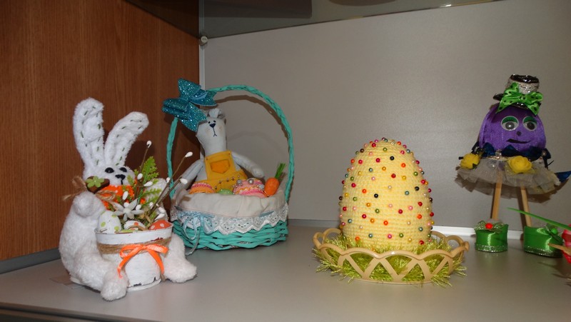 Педагоги, учащиеся и их родители представили удивительные творческие работы. Пасхальные яйца, декорированные художественными и природными материалами, трогательные пасхальные кролики и цыплята, милые интерьерные композиции выполнены талантливыми мастерами с большой фантазией и в различных техниках декоративно-прикладного искусства.