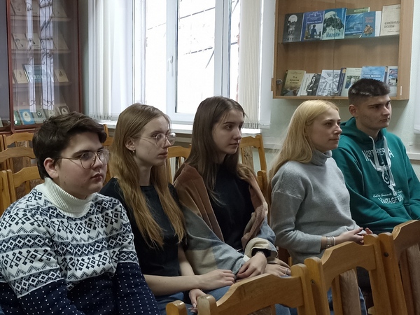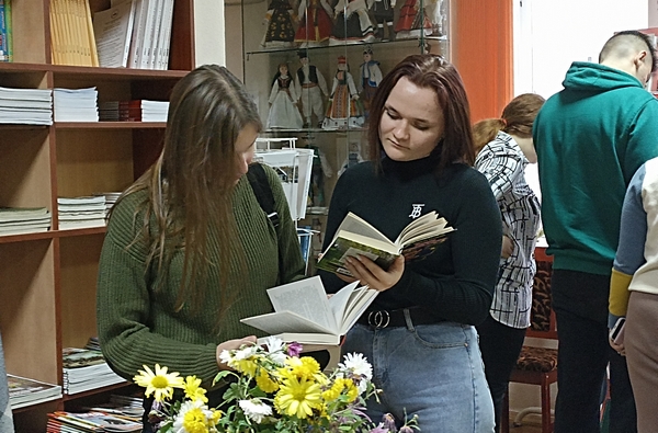 Что доставляет огромную радость библиотекарю? Когда в библиотеку записываются новые читатели, приходят молодые люди с конкретными запросами. Так было и в этот день: первокурсники не только посмотрели серьёзный и важный для каждого фильм, записались в библиотеку, но и с интересом листали книги, обсуждали их. Пытливые и интересующиеся юноши и девушки спрашивали о наличии в фонде книг того или иного автора, брали издания на дом.