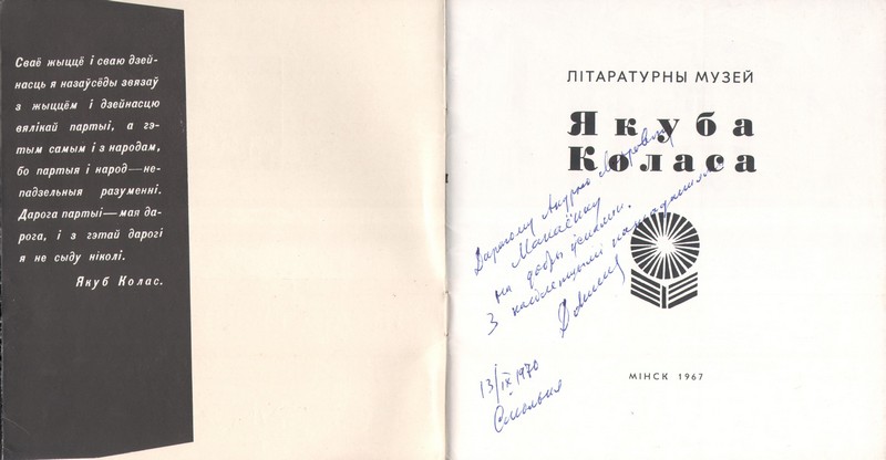 В Мемориальном зале народного писателя БССР Андрея Макаёнка хранится книга-альбом «Літаратурны музей Якуба Коласа» с дарственной надписью сына классика Даниила Константиновича Мицкевича. Надпись гласит: «Дарагому Андрэю Ягоравічу Макаёнку на добры ўспамін. З найлепшымі пажаданнямі. Д. Міцкевіч. 13/IX 1970. Смольня». Книга была подарена Гомельской областной библиотеке вдовой А. Е. Макаёнка Любовью Ивановной.
