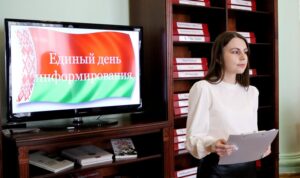18 мая в Гомельской областной библиотеке прошёл единый день информирования, на котором член информационно-пропагандистской группы, заведующий отделом краеведения Алина Харлан представила доклад «Историческая память о Великой Отечественной войне как фактор формирования патриотизма».