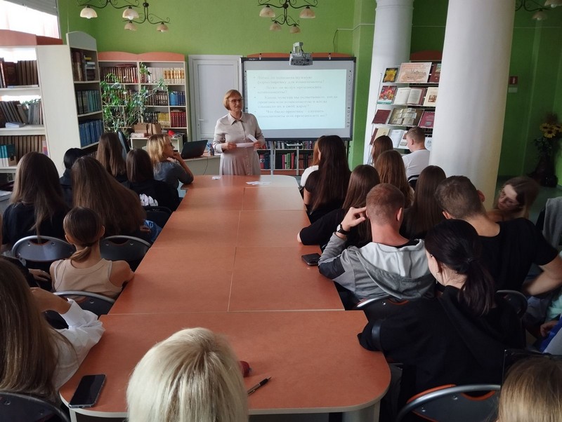 10, 11 и 12 сентября в отделе обслуживании учащихся 6–9 классов прошёл познавательный час «И бранным словом слух не оскорблю…», где учащиеся СШ № 24 и дорожно-строительного колледжа узнали историю праздника и с лёгкостью прошли дидактические игры «Скажи доброе словечко», «Ласковое слово», «Оцени поступок» и др.