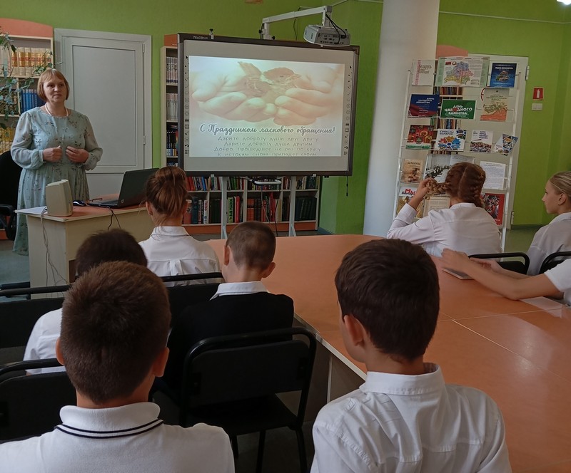 Заведующая отделом Ольга Хорсун обратила внимание ребят на то, что ласковое обращение – это не просто слова, а именно те слова, которые всегда располагают к хорошим поступкам. Доброе слово приятно услышать каждому, не стоит скупиться на доброту. Ольга Владимировна рассказала и про комплименты – это простое, доступное, но сильное средство для установления скорого контакта между людьми. Их нужно говорить ежедневно, не только близким, но и знакомым. Комплименты дарят радость, прибавляют силы, уверенность в себе, создают комфортную душевную обстановку.