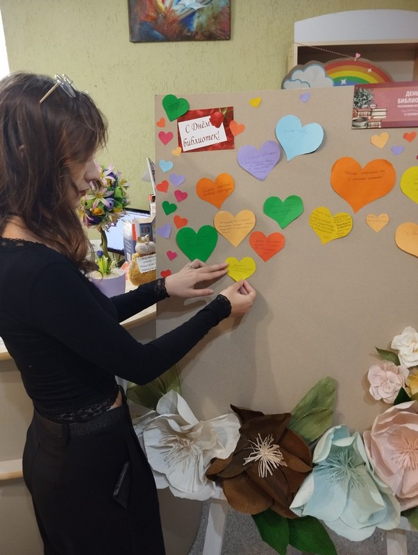 В преддверии Дня библиотек в отделе стал работать стенд-поздравление «Моя улыбка и пожелание – библиотеке!», где все пришедшие читатели оставили свои добрые пожелания библиотеке.