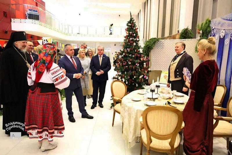 В фойе областного общественно-культурного центра развернулись выставки, посвящённые светлому празднику Рождества Христова. Особую атмосферу, наполненную теплом и красотой, для гостей вечера помогли создать и актёры народного любительского театра «Грачи» областной библиотеки Светлана Тимошенко и Александр Радченко.
