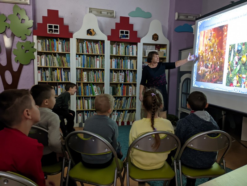 Ребята знакомились с новогодними традициями стран мира, историей ёлочных игрушек и, конечно, с лучшими детскими книгами зимней тематики. Мальчишки и девчонки совершили литературный волшебный экскурс, угадывая сказки по описанию и видеофрагменту. С огромным удовольствием вспомнили любимые сказки и познакомились с новыми новогодними и рождественскими историями.