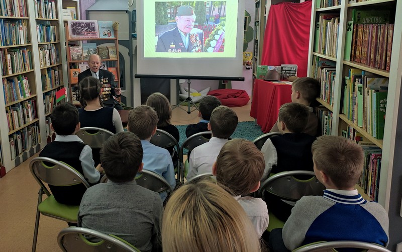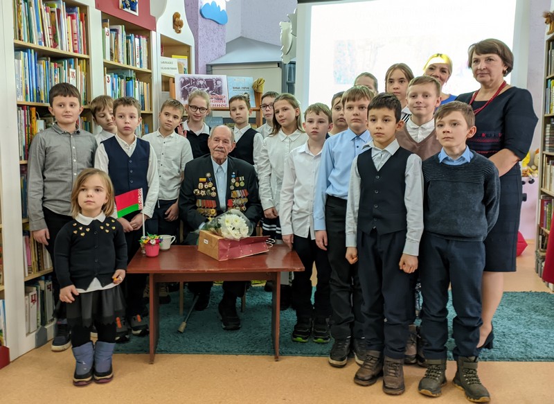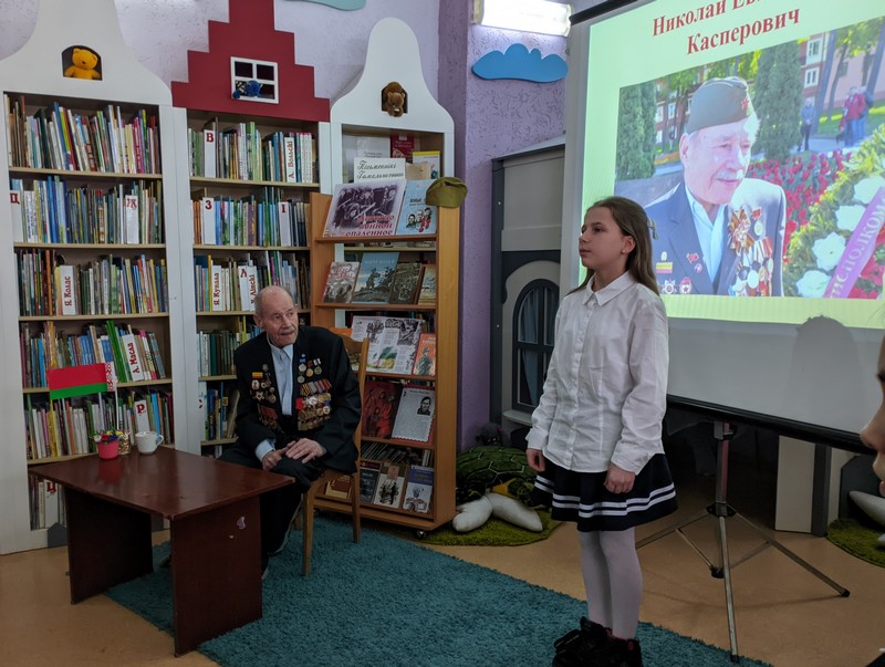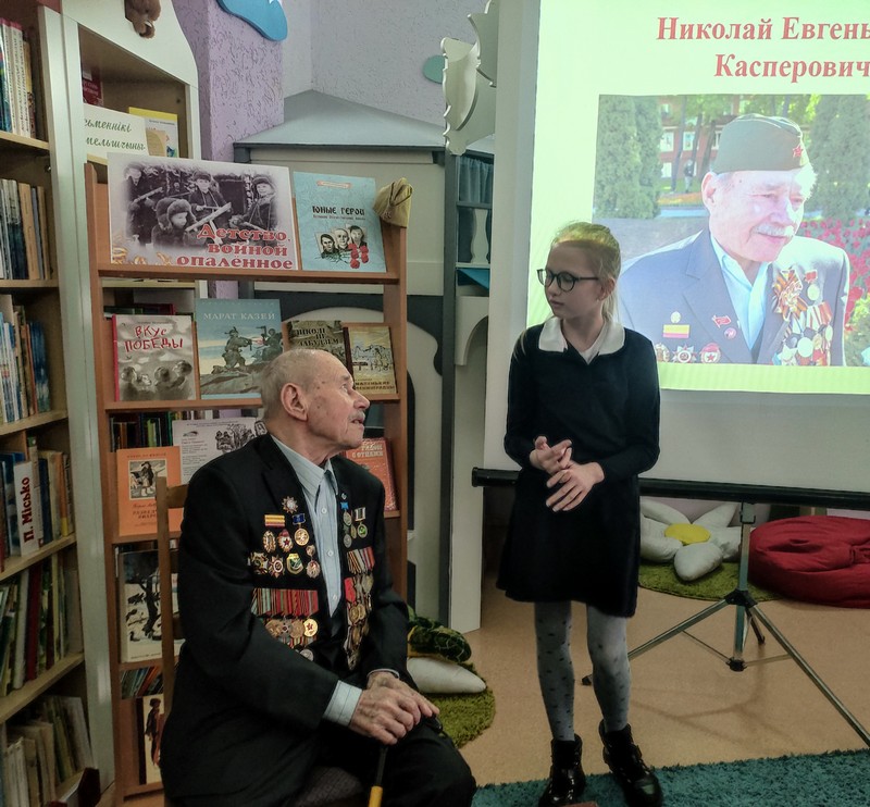 В преддверии 80-летия Великой Победы у юных читателей отдела обслуживания учащихся 1–5 классов побывал уникальный гость – ветеран Великой Отечественной войны Николай Евгеньевич Касперович.