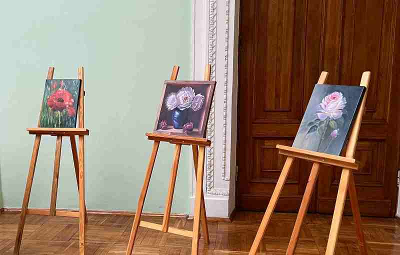 В представленной экспозиции – 17 произведений, выполненных в разных техниках. Цветы являются не просто героями и украшением работ художницы, но и открывают тайный смысл, передают послание внимательному зрителю. Стоит лишь присмотреться – и «цветочный» язык раскроет загадки произведений.