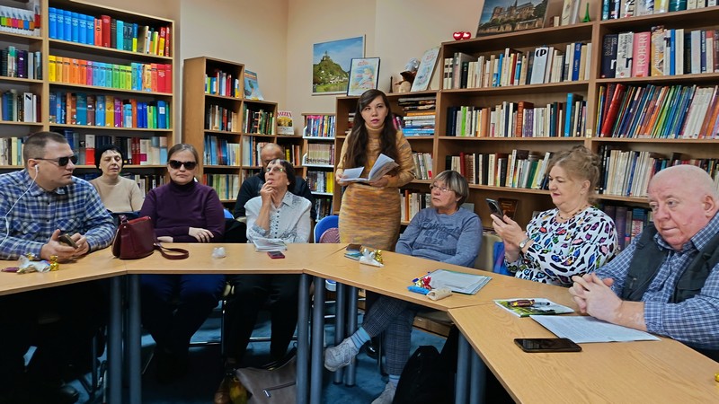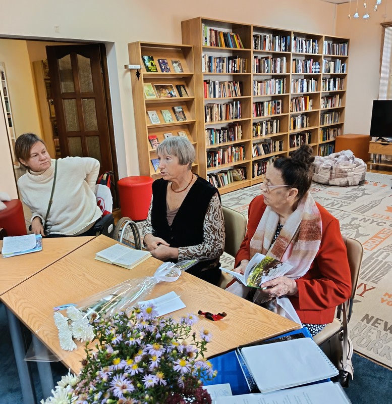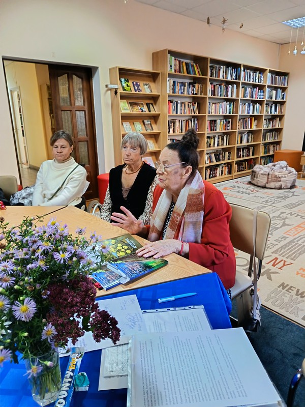 На октябрьской встрече гостья познакомила литераторов со своими книгами, рассказала о созвучии с творчеством дочери и подписала в подарок библиотеке две книги.