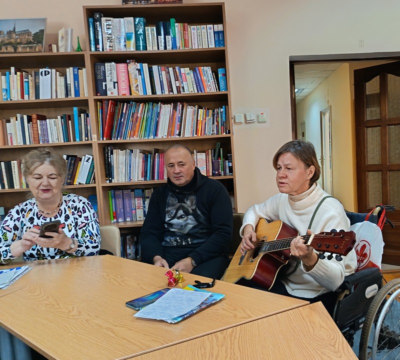 Встреча с Татьяной Череухиной – всегда радость. Слушая её стихи, каждый раз словно приоткрываешь завесу некой тайны творчества. Проникновенно прочитала Татьяна авторское стихотворение о связи погибшего на войне прадеда с сегодняшним днём через залетевшую в окно бабочку. Не менее интересное, философское стихотворение предложил и муж Татьяны – Владимир Череухин.