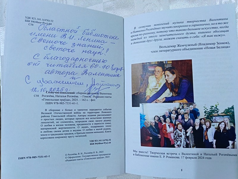 В гостях у «Пралески» была Валентина Рогачёва, член литературного объединения «Новая Белица» и давний друг «пралесковцев». Валентина Ивановна – отличник просвещения, ветеран педагогического труда, 26 лет посвятившая Центру творчества детей и молодёжи Новобелицкого района. Была руководителем Клуба интернациональной дружбы Гомельского областного дворца пионеров и школьников. В 2021 г. в издательстве «Гомельская праўда» вышла первая книга рассказов Валентины Рогачёвой «Антоновка», наполненная любовью и теплотой ко всему тому, что связывает человека с его малой Родиной. В 2025 г. появилась книга «Созвучие поколений», где в творческом тандеме с Валениной Ивановнрй выступила её дочь Наталья Рогачёва.